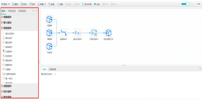 億信ABI中內(nèi)置組件包括:輸入輸出組件、轉(zhuǎn)換組件、流程組件、統(tǒng)計(jì)組件、數(shù)倉(cāng)組件、腳本組件、大數(shù)據(jù)組件等。面向數(shù)據(jù)分析師精心打造,滿足各種各樣的數(shù)據(jù)處理場(chǎng)景。