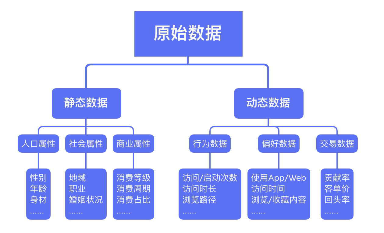 在采集數(shù)據(jù)時(shí),需要考慮多種維度,比如行業(yè)數(shù)據(jù)、全用戶(hù)總體數(shù)據(jù)、用戶(hù)屬性數(shù)據(jù)、用戶(hù)行為數(shù)據(jù)、用戶(hù)成長(zhǎng)數(shù)據(jù)等等,并通過(guò)行業(yè)調(diào)研、用戶(hù)訪(fǎng)談、用戶(hù)信息填寫(xiě)及問(wèn)卷、平臺(tái)前臺(tái)后臺(tái)數(shù)據(jù)收集等方式獲得。