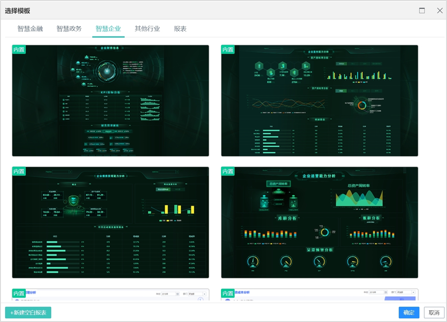 億信ABI涵蓋了銀行、保險、房地產、安監、財務、人力、零售、制造等多個行業,只需要重新取數,直接套用,讓零設計基礎的用戶快速制作一張專業的、高顏值IDE可視化報表。