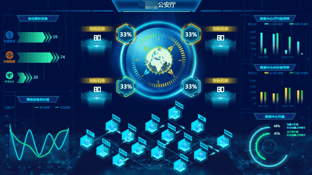 04 大屏可視化組件--輔助圖表 輔助圖表通常圍繞視覺中心的四周,起到錦上添花的作用,用來呈現(xiàn)次要指標,從各種維度進一步細化核心指標。 不需要設置任何數(shù)據(jù),實時顯示的當下時間,并且以時鐘表盤的方式,古典有韻味。