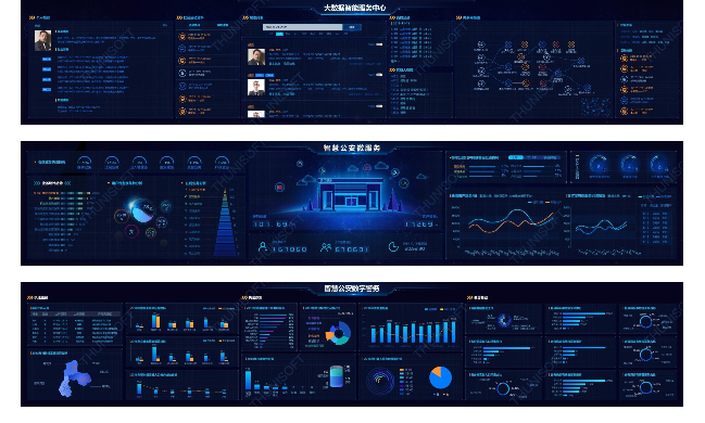 在大數據時代,只有通過適當的可視化工具來展示和表達數據,才能更直觀地向用戶傳達數據的價值。可視化大屏就是一種非常有效的數據可視化工具,它可以將業務的關鍵指標以可視化的方式展示到一個或多個LED屏幕上,不僅使業務人員能夠從復雜的業務數據中快速、直接地找到重要數據,而且能對決策者起到輔助作用。 什么是大屏可視化 數據可視化就是通過圖形設計來表示枯燥的數據,從而實現更準確、更高效的數據分析和表達。即通過圖形手段清晰有效地傳達和交流信息。一方面它允許用戶挖掘數據中隱藏的價值。在新技術的支持下,數據可視化除了具有“可視化”的特征外,還具有“可交流”和“可互動”的特征;另一方面,可以使數據的呈現更加直觀,方便用戶查看。 大屏可視化工具應用場景 隨著大數據的發展,可視化大屏在各個行業的應用越來越廣泛,尤其是在商業、政府、制造、金融等行業的業務場景中。它具有分析判斷、日常監測、展示匯報、應急指揮等多種功能,在提高科學管理方面發揮著重要作用。 酷屏大屏可視化平臺,是億信華辰自主研發的新一代數據可視化產品,開箱即用,可靈活、快捷地搭建專業、炫酷的可視化大屏,覆蓋企業匯報、客戶參觀、指揮監控中心等場景。內置豐富行業模板,精致實用組件,讓數據“躍然屏上“,釋放無限價值。并已經應用到教育公安、政務云等場景。 校情決策支持平臺 為了輔助校領導層在宏觀層面掌握校園數據,分別從招生就業、學生工作、國有資產、圖書典藏、科研成果、后勤服務、發展規劃、財務、教務、人事以及全校核心數據等11個方面全面展示學校數據,橫向覆蓋了學院各類數據信息和各部門的工作內容。通過對接校方數據中心保證數據事實的準確性、及時性,為學院管理團隊科學決策提供了有效的數據支撐。 智慧公安分析系統 智慧公安實戰應用包括了智慧搜索、智慧建模、智慧服務、智慧監督、智慧標簽、智慧小區、智慧管控以及智慧監測,實現個人檔案的查詢,同時關聯社會關系和活動軌跡并繪制出關系網絡圖,通過建模顯示各模型使用情況和資源訪問量、訪問趨勢,進行在線業務分析,各類警務案件指標分析,根據標簽標準生成人員畫像,通過重點人員異常軌跡進行警情監測,根據熱點追蹤進行傳播路徑分析,實現公安智慧化管理。 政務云分析平臺